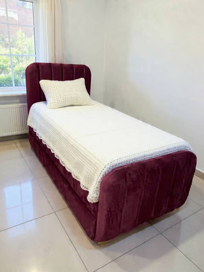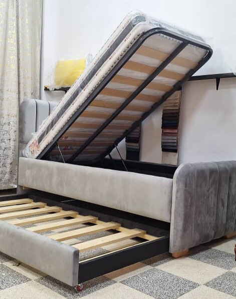 يعتبر السرير المتحرك حلاً عمليًا للغرف الصغيرة أو غرف الضيوف، حيث يوفر مساحة نوم إضافية دون شغل مساحة دائمة. بالاضافة إلى دمج درج كبير يوفر مساحة تخزين إضافية، مما يساعد على تحسين تنظيم الغرفة.